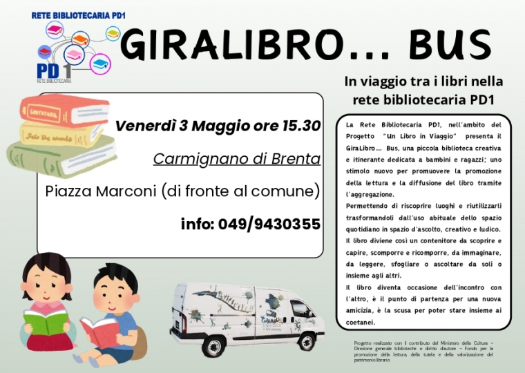Venerdì 3 Maggio alle ore 15:30 Piazza Marconi - Una piccola biblioteca creativa e itinerante dedicata a bambini e ragazzi.