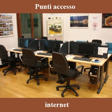 Al primo piano sono dislocate 6 postazioni internet per adulti e altre 4 al piano terra per i ragazzi. Il personale si rende disponibile per aiutare anche gli adulti all'uso dei dispositivi.